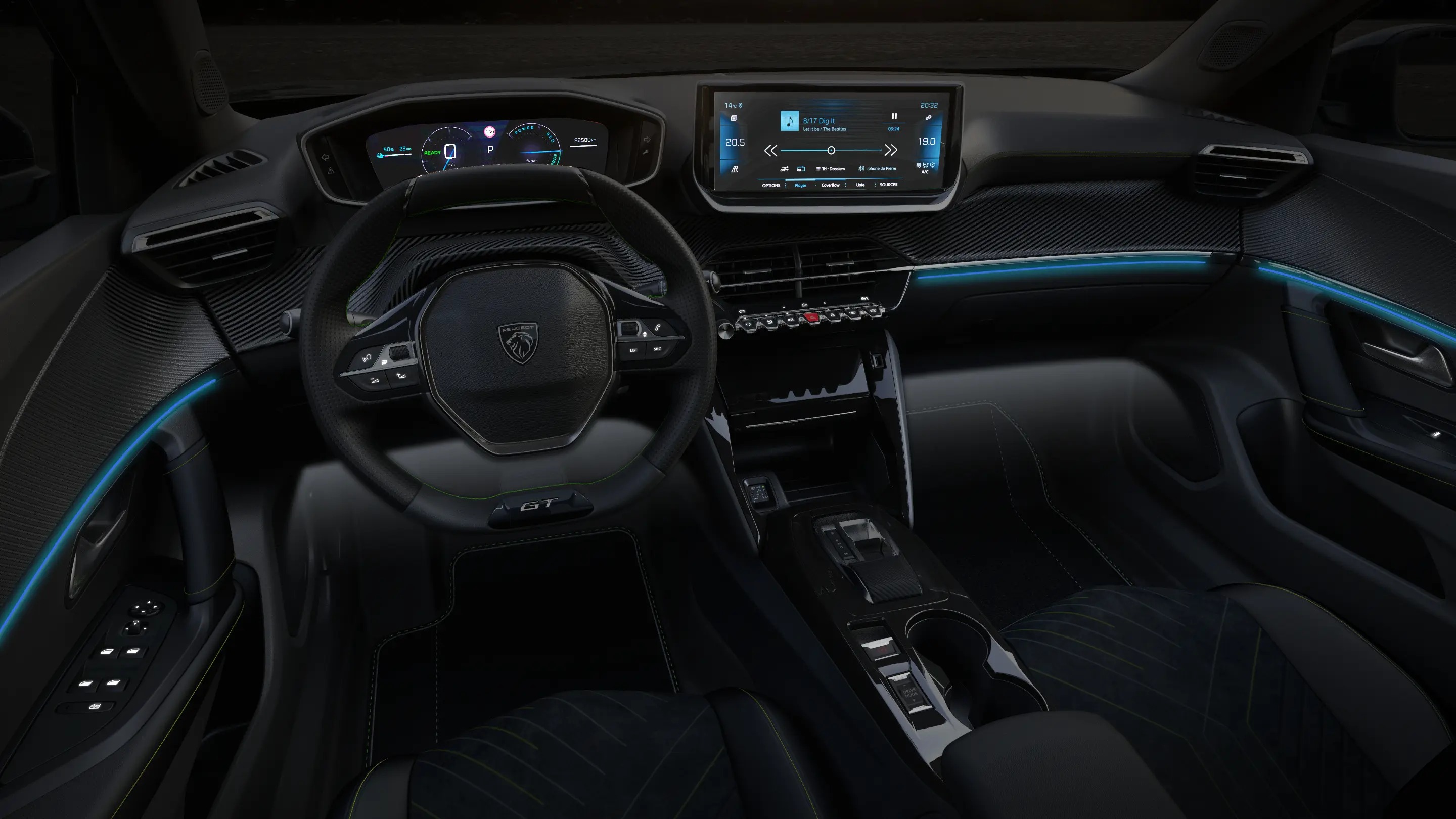 Defina o mood da sua jornada com as luzes internas personalizáveis Ambient Light em LED.